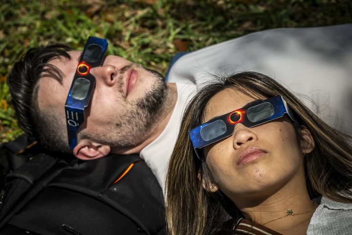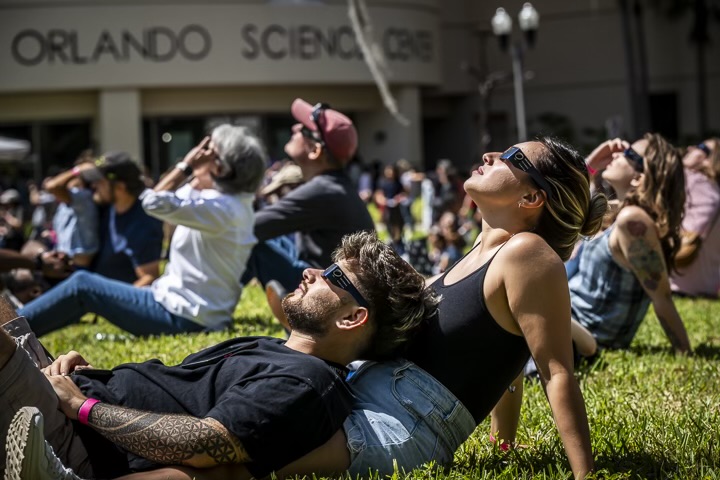 Did you watch today’s eclipse? Today’s solar eclipse was a part of a total solar eclipse that spanned across North America, from Mexico through the U.S. to the eastern coast of Canada. In Central Florida, we experienced about 60% coverage of the sun by the moon. The eclipse began around 1:45 p.m. EST, reached its peak at around 3 p.m., and concluded at approximately 4:20 p.m. We attended the Orlando Science Center’s viewing party this afternoon.